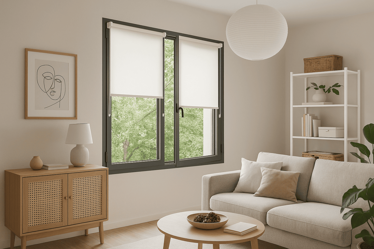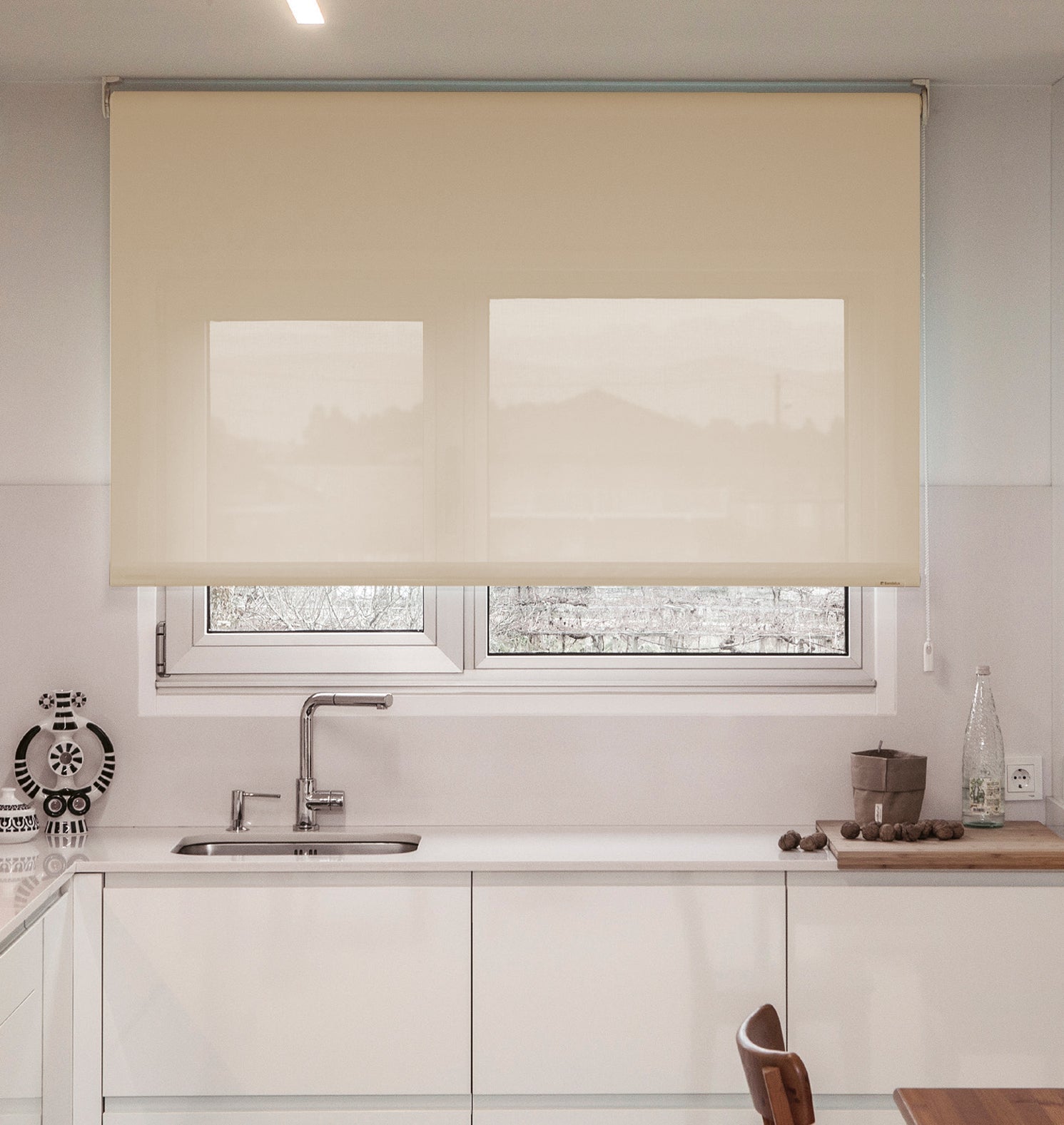 💡También tenemos estores en tejido técnico como los enrollables screen, que combinan estética y funcionalidad en espacios como cocinas u oficinas.